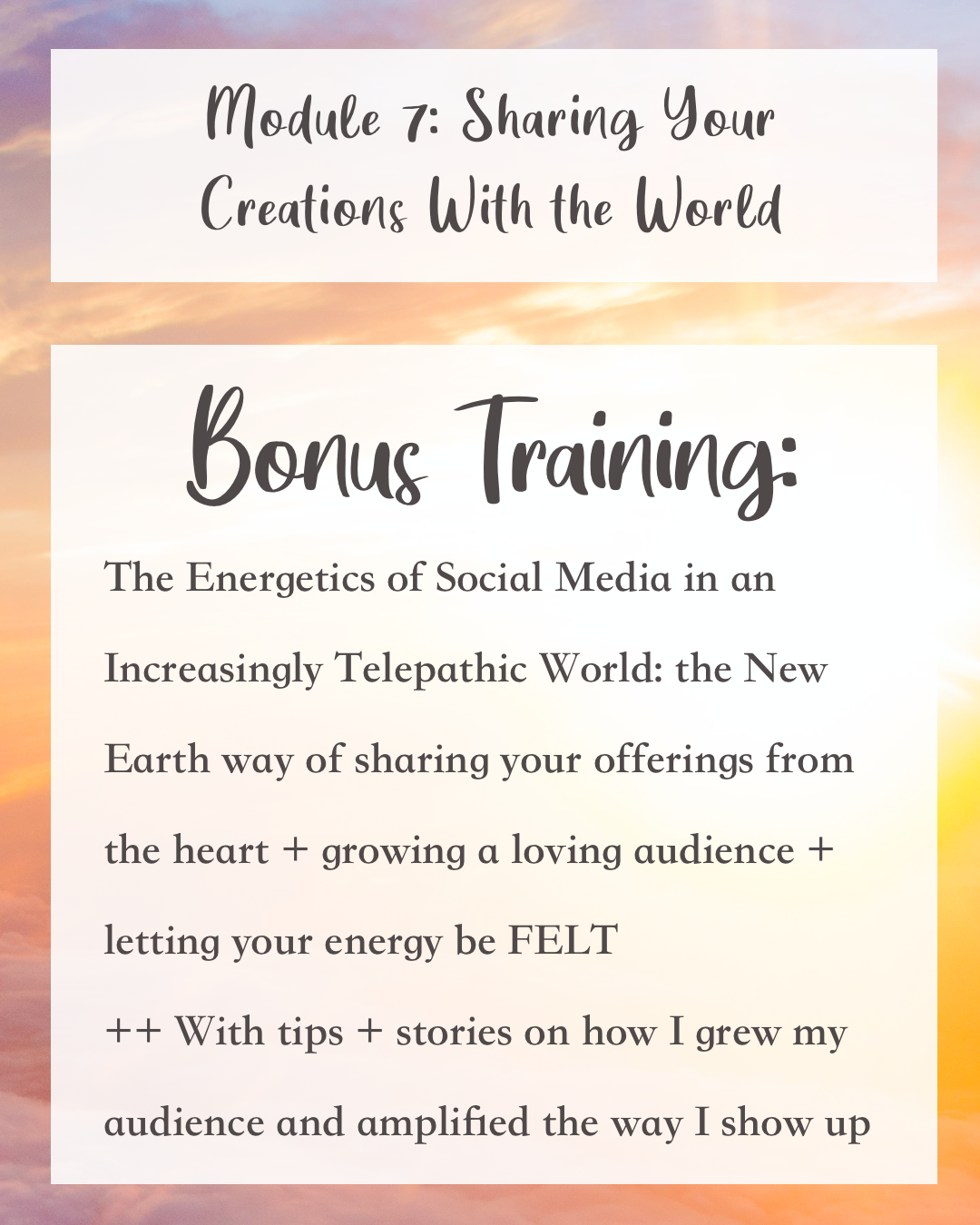 — Sharing your creations with the world (+ Bonus Training on social media: being seen, sharing your heart, + community growth)